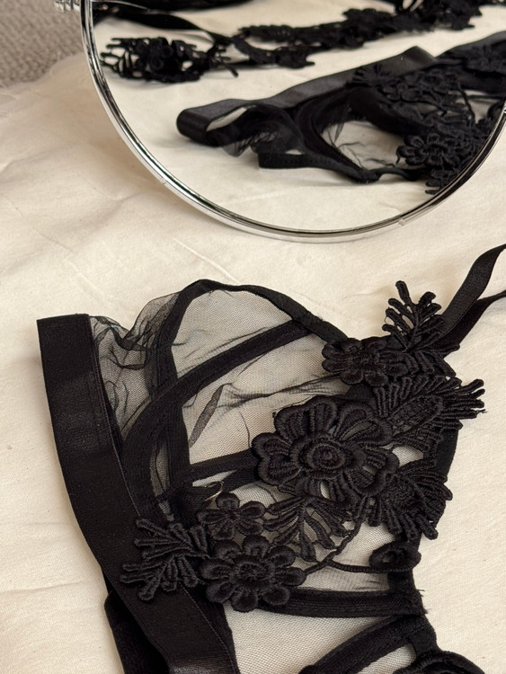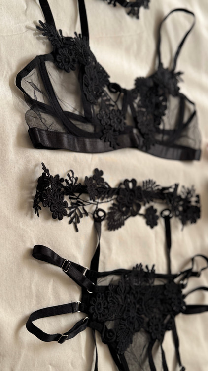 ست توری سوتین و شورت وگارتر و گردنبند شین